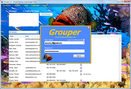 Ever wanted to send a text to all your friends, a youth group, or members of an organization? Need to reach an entire group of people quickly? Use Grouper to easily send a single text to tens, hundreds, even thousands of contacts with a single send operation. Get replies on both your cell phone and computer via Google Voice.